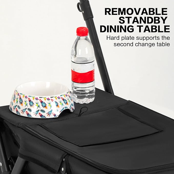 - 2 different ways to carry - Handle Pet Carrier Bag / Travel Stroller,Our carrier seamlessly converts into a backpack, wheeled carrier, car seat, and pet bed, so you can bring your dog or cat just about anywhere. 3 Pockets provide room for store. Pockets on both sides, one side is bottle pocket and the Dog Poop Bag Holder , other side is zipper pocket for you put any dog snacks, toys and other essential supplies. One zipper bag is inside in backpakck.