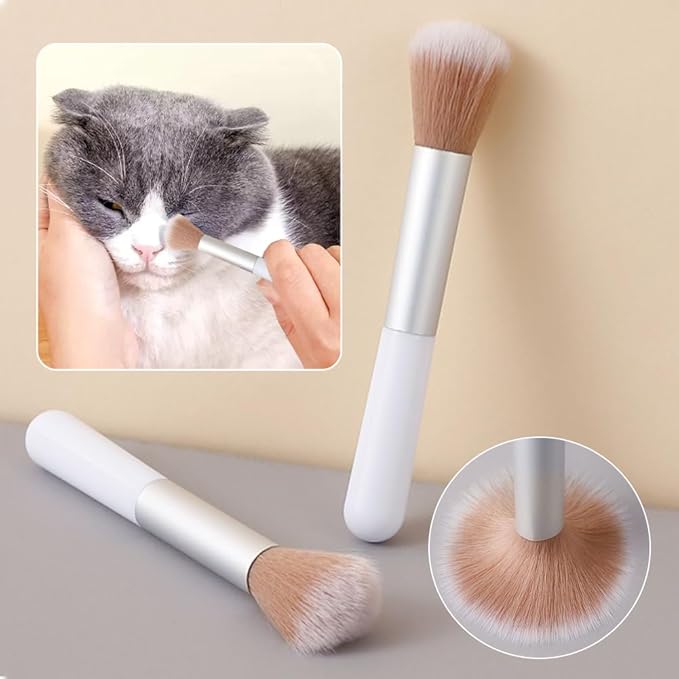 - CLEANING BRUSH: The fibrous bristles have a strong grip strength, which not only effectively cleans eye feces and reduces tear stains, but also allows for easy application of beauty products around eyes of your pets. The brush head has been specially treated to prevent static electricity, maintaining neat and tidy without attracting hair or fluff, making cleaning a breeze