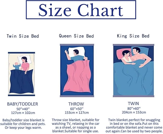 - [Versatile for Different Settings] Designed for versatility, this flannel blanket is suitable for various settings and activities. Use it as a cozy wrap while reading, a warm layer during outdoor picnics, or a comforting companion on long flights. Additionally, it enhances your home decor, adding warmth and style to your living room, bedroom, or office.