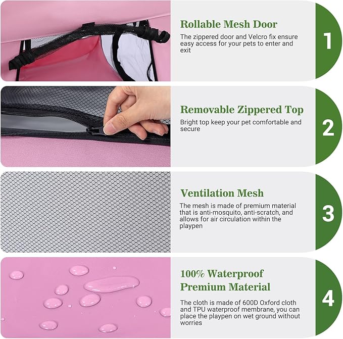 Royizen Puppy Cat Tent Playpen Foldable Waterproof Dog Crate Kennel Indoor Outdoor Portable Playpen Kitten and Small Pets Pop Up Kennel Cat Travel Carrier with Litter Box Enclosure, Pink