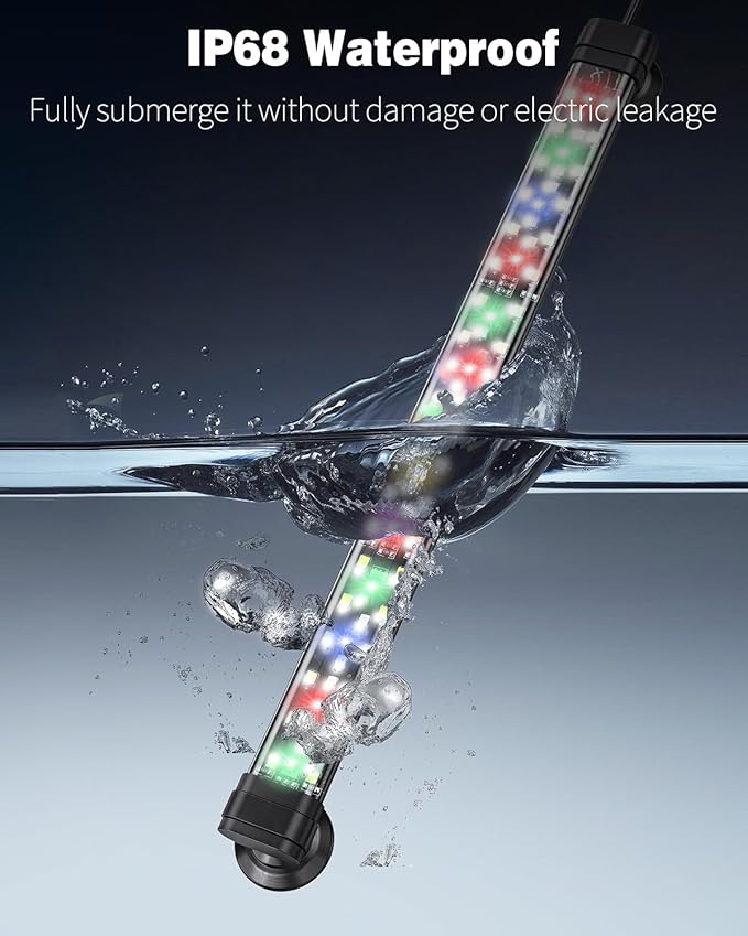 - Heavy-duty Design: The clear board of the aquarium light is strictly sealed with silicone to keep out moisture or droplets. Solid aluminum shell can accelerate heat dissipation. The long-lasting bulbs and ETL-certified adapter ensure safety and continuous lighting.