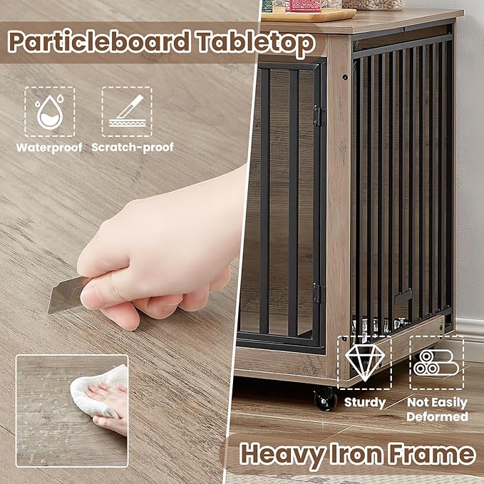 - 【Dog Crate Furniture with 4 Wheels】360° Rotating casters allow you to effortlessly move the dog crate end table to any location. Two of these wheels are lockable to ensure the necessary stability when needed.