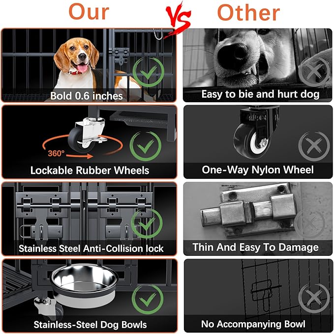 aboxoo 48/42 inch XL Dog Crate for Large Dog/Double Medium Dogs,Heavy Duty Metal Dog Cages,All Metal Open Top,Dog Kennel Indoor with Wheels,Floor Grid, Tray, Divider and Feeding Bowl
