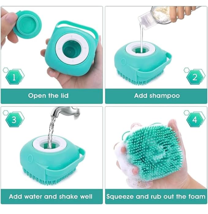 Dog Bath Brush, Dog Grooming Brush - Silicone Cat Shampoo Comb, Shampoo Dispenser for Kitty and Puppy (Blue)