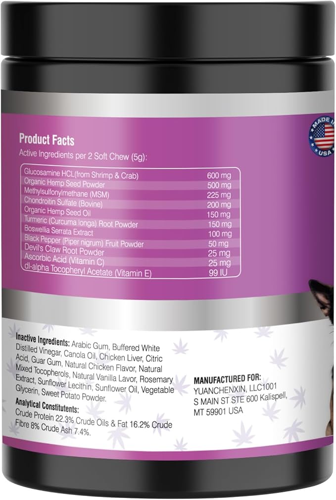 - [Dog Joint Pain Relief] Dog joint and hip supplement provides relief for dogs from joint discomfort they may be facing. Dog joint chews are rich in natural ingredients. The ingredients in dog glucosamine chews can reduce discomfort and dog joint pain relief in dogs by reducing swelling and redness. Joint supplements for dogs are gentle on dog's joints and improves dog's comfort. Joint health supplement for dogs allow dogs to enjoy a happy life