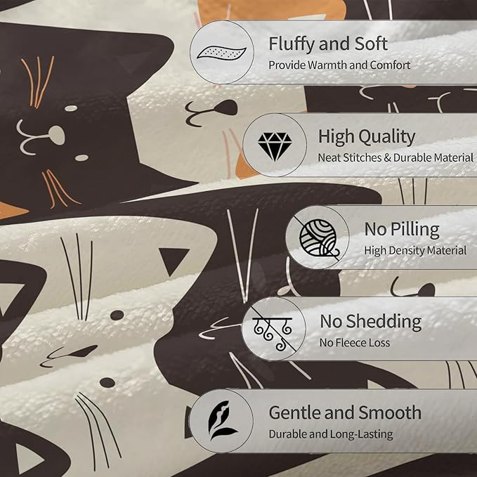Cartoon Cat Flannel Throw Blanket, Soft Cozy Lightweight Animal Blankets for Couch, Bed, Travel, Outdoor & Decor, Warm Fluffy Fuzzy Blanket for Adults Kids 60×50 in