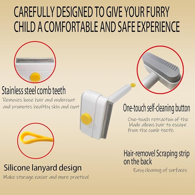 - 🐱SAFE AND EFFECTIVE, SKIN-FRIENDLY🐶This shedding brush dog hair The neatly dense comb teeth are of perfect length, ensuring effective hair removal without causing any discomfort to your pet. short hair dog brush for shedding The button design can easily remove accumulated hair with just one click, while the comb teeth can be retracted to protect the tool and your pet's skin.