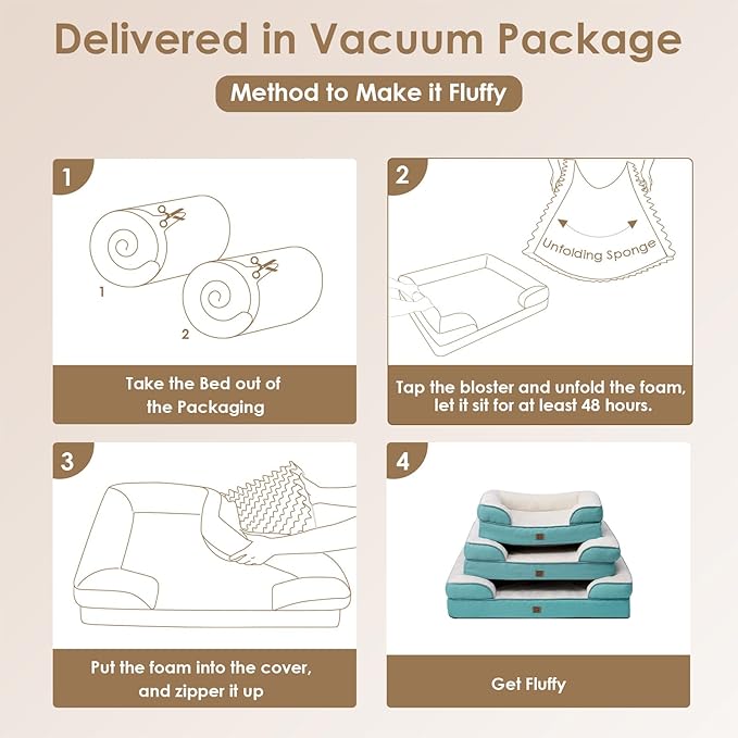 - MACHINE WASH and CARE INSTRUCTION: Our washable dog bed with removable cover has zipper closure and can be easily cleaned. Just get the foam off and it can be machine washed directly with the sides. Please note that the inner foam is not washable. After receiving it, leave it for 24-48h for rebound.
