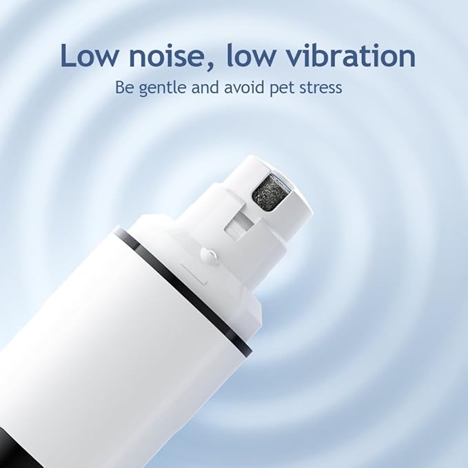 - Ultra low noise and vibration: Many pets feel stressed due to the sound and vibration of pet nail grinders. However, our electric pet nail grinder uses high-quality motors and silent technology to generate extremely low vibrations, keeping pets calm and helping to polish their paws faster and easier. It is very suitable for new pet owners and professional pet groomers.