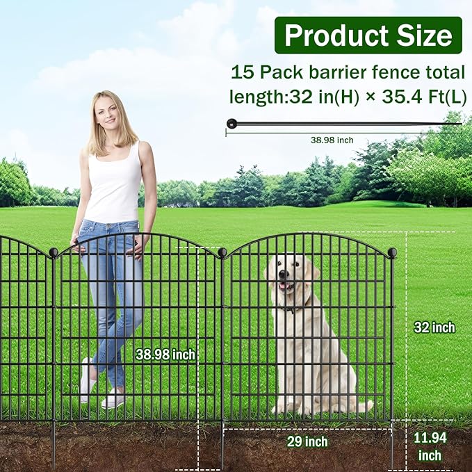 15 Panels Decorative Garden Fence - 32 in (H) x 35.4 ft (L) No Dig Dog Fence Outdoor for Yard, Rustproof Tall Garden Fencecing Panels, Animal Barrier Suitable for Yard Border, Patio, and Outdoor Use
