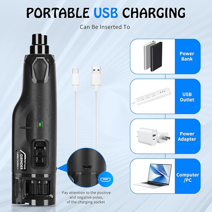 - 【Rechargeable Portable】Built in rechargeable battery, you can easily grind your pet’s nail anywhere. Works great and no sharp nails or bloody quick.