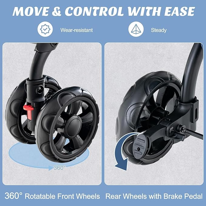 - 【Effortless Mobility】Move seamlessly across all terrains with the double dog stroller's 360° universal wheels and padded handle. Lockable wheels provide stability and control, while all wheels are shock-absorbing, low-noise, and wear-resistant.