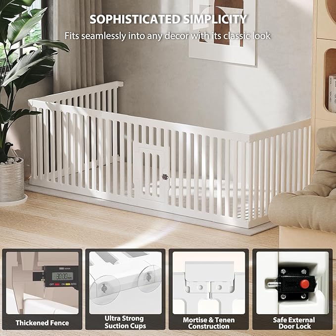 - SECURE & SAFE: Worried about your furry Houdini escaping? Our playpen features a secure external door lock that keeps curious paws right where they belong—inside! Perfect for indoor lounging or outdoor adventures, this enclosure gives you peace of mind whether you're stepping away for a moment or hosting a busy gathering. No more surprise chases—just happy, contained pets!