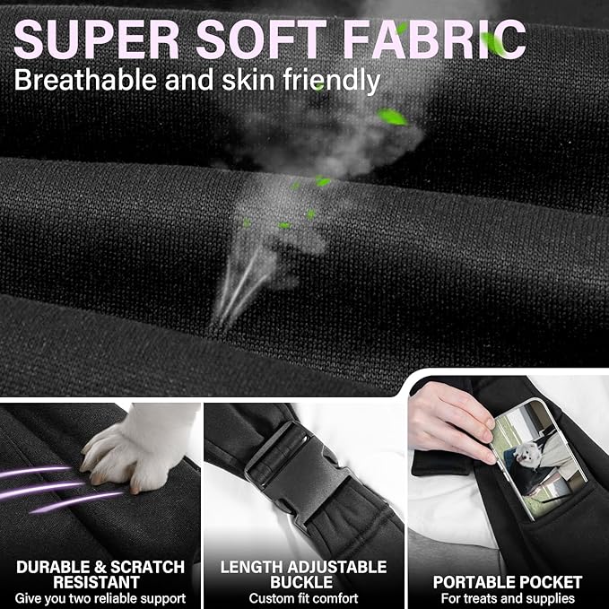 - COMFORTABLE CARRY: The puppy sling carrier bag’s large opening make it easy for dogs to go in and out, which is very convenient for us to use. It includes a handy pocket on the shoulder strap for essentials like phones, keys, cards, or wallets. The sandwich mesh and padded shoulder straps offer breathable support