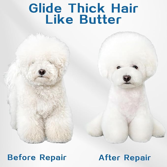 - 【Dog Clippers Professional for Thick Hair】Our dog clippers aredesigned with stainless steel blades, more durable, convenient, and faster. It delivers outstanding cutting performance which can effortlessly cuts through your dog's hair.