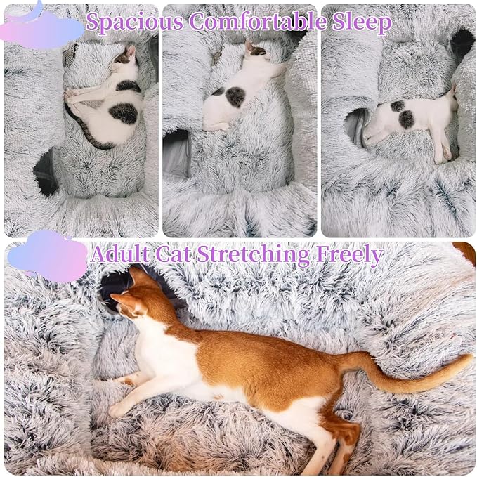 - Interactive and Fun: With four tunnel openings and dangling balls, this bed encourages active play and human-pet interaction, elderly or disabled cats cat can easily conduit the center mat without jumping over the tunnel, providing untold entertainment for cats.