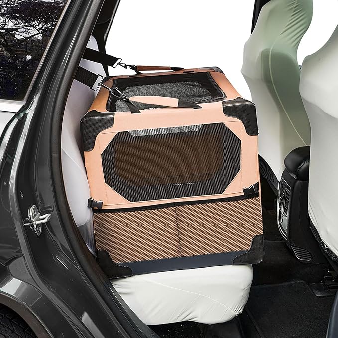 - _asy Use & Maintenance: The 26'' portable dog crate for cars is fully assembled and can be set up and folded in seconds without any tools. It features a waterproof fabric, which can be easily cleaned with a damp cloth. The removable mat and machine-washable cloth simplify care. This indoor and outdoor dog crate has side pockets for conveniently storing snacks, leashes, waste bags and other necessities. It is very suitable for travel