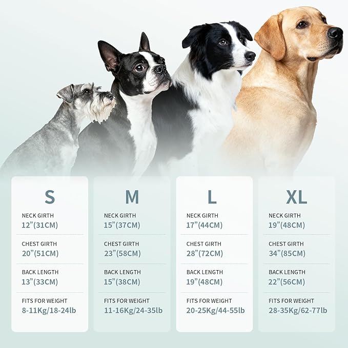 - 【Important Notice】Please refer to our size chart and method because of the different designs on different dog clothes. You can follow the priority order of CHEST > NECK >WEIGHT > BACK to choose the right size. If you still have no idea about size choosing, please contact us and we can recommend the suitable size for your pet.