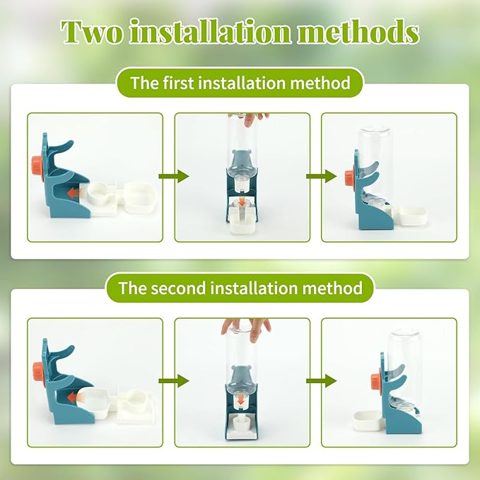 - 【Simple and Convenient Installation】: There are no complicated extra installation steps for the parrot feeder, you just need to fix it on the cage with the matching screws, and you can give your love bird a perfect gift. The automatic bird feeder can be fixed outside or inside the cage, and the top cover can be opened directly to add food without removing it.