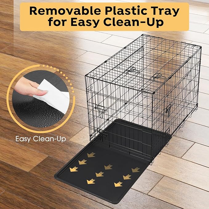 - EASY TO SETUP AND CLEAN: The foldable dog crate can be set up in seconds, with no tools required for assembly. Durable, leak-proof plastic tray, easy to remove and clean. Raised height around the tray prevents any mess from spilling.
