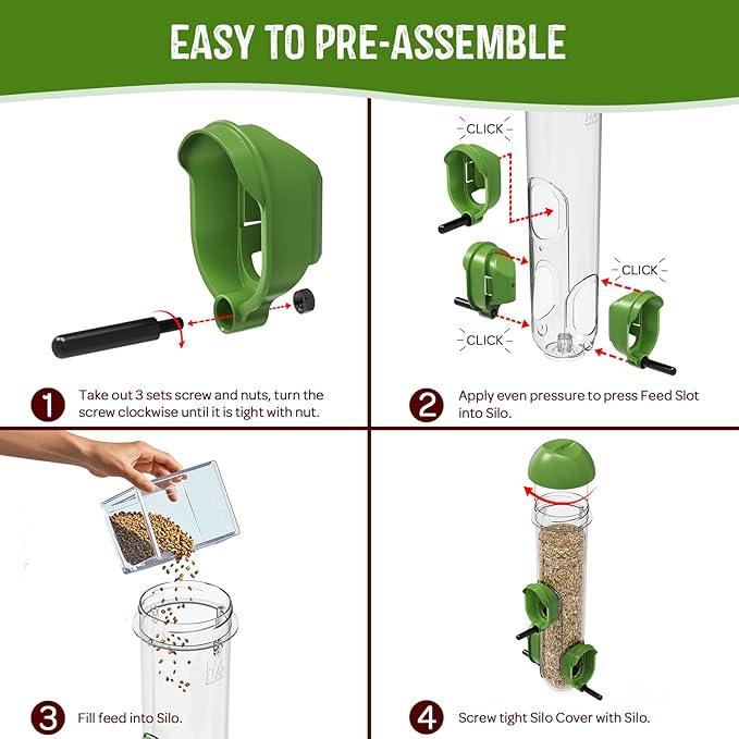 - Unique Gift for Bird Lover: Absolutely a great gift for family, friends and nature lovers. Removing and refilling can be done with one simple movement. Set up in seconds, hassle-free, and ready to attract wild birds to your backyard. Maintaining the feeder by ensuring its well-stocked is an enjoyable activity that's great for keeping seniors busy or teaching young kids responsibility