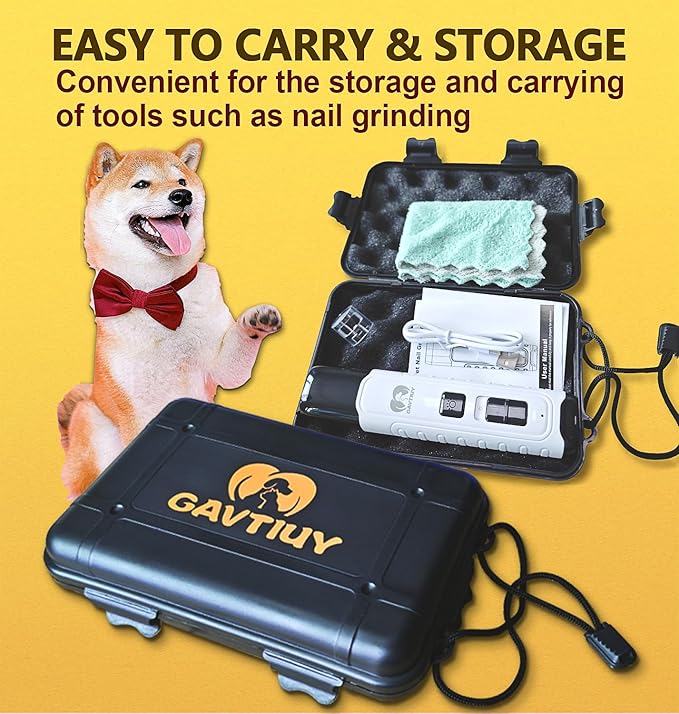 - 【Rechargeable &Work-Box】:Specially equipped with a Gavtiuy toolbox,you can better place your dog's nail grinder to find it at any time.This wireless use dog nail grinder comes with a USB cable for charging,it can last 3 hours after a 3-hour charge