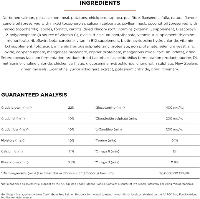 Go! Solutions Weight Management + Joint Care, Grain-Free Dry Dog Food, Salmon Adult and Senior Recipe, 22 lb Bag
