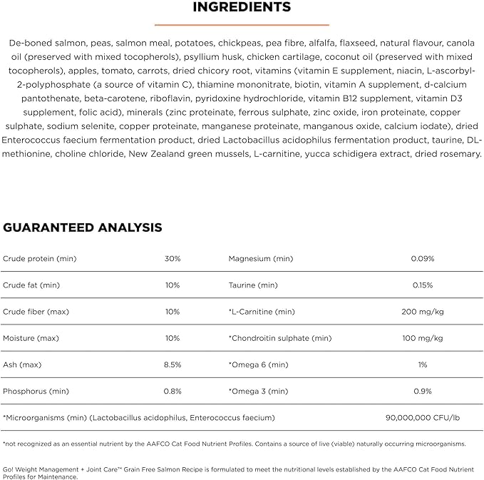 Go! Solutions Weight Management + Joint Care, Grain-Free Dry Cat Food, Salmon Recipe, 12 lb Bag