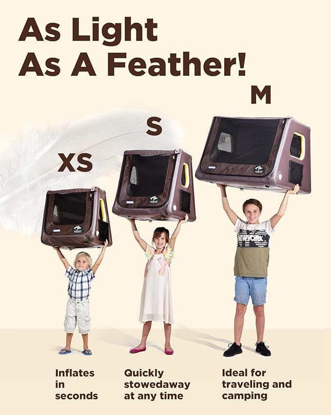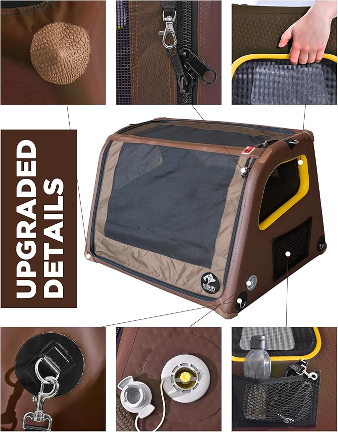 • AIRBAG FUNCTION AIR FLOOR CUSHIONING: HIGHPI inflatable soft dog crate for cars offers an "airbag function" to maximize impact safety for dogs during travel in case of emergency braking or sudden evasive movement. This dog travel crate has passed the crash test with flying colors! Your dog is protected by 4cm thick air chambers! This dog kennel outdoor has a sturdy inflatable 4cm thick floor which offers good cushioning and comfortable transport for your furry companion.