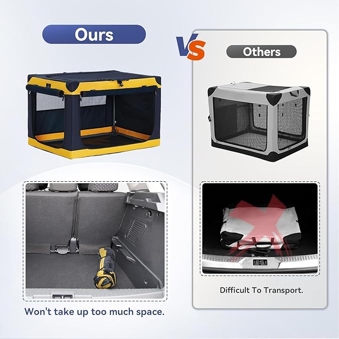 - Convenient Multi-Access Design: Our Foldable dog crate includes 3 doors (front, side, and top) to provide versatile access points. The front and side doors can be rolled up and secured with Velcro, making it easier to load and unload your pet.