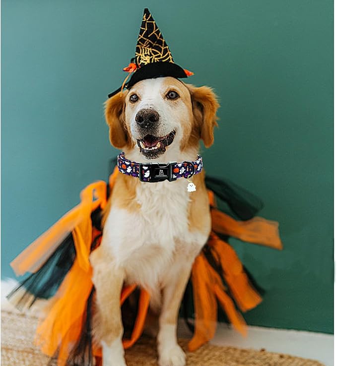 Lionheart glory Dog Collars Fall Halloween Pumpkin Collar Dog Heavy Comfortable Adjustable Dog Collar for X-Small Puppy Collar Dogs Girls Boys Dog Collar Party Pet Gift