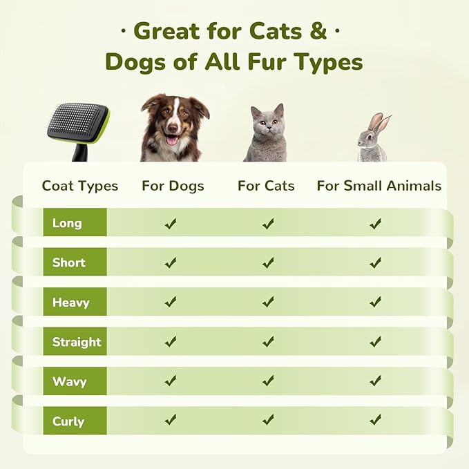 - SUITABLE FOR ALL COAT TYPES : The dog brush for shedding is suitable for use on dogs, cats, and small animals with all coat types, including long, short, curly, wiry, and even heavy coats.