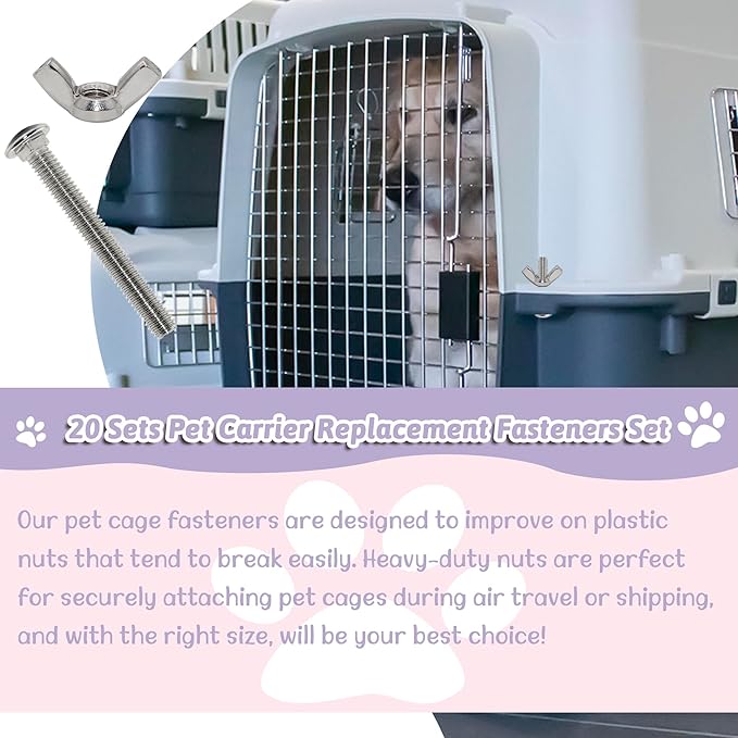 - Convenient Set: Our pet carrier replacement fasteners set Includes 20 heavy-duty solid stainless steel nuts and 20 M5 bolts, providing all the fasteners you need for your pet carrier or kennel