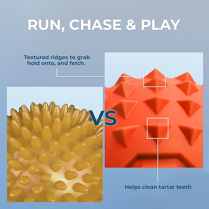 - Textured with Spikes for Dental Health: The spiked surface helps massage gums and clean teeth, promoting better oral hygiene while your dog enjoys their favorite rubber toy