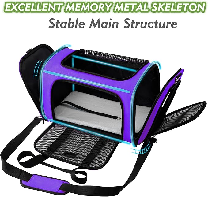 Soundy Large Cat Carrier Dog Carrier Pet Carrier Under 25 Lbs, Large Cats Small to Medium Dogs Portable Soft Sided Folding Travel Pet Carrier, Cat Carrier for 2 Cats Car Travel Carrier(Large, Purple)