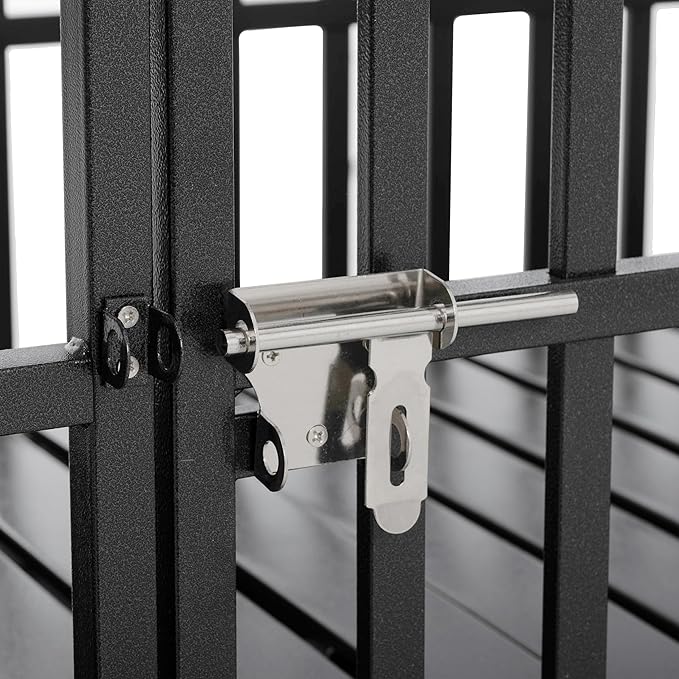 52" Heavy Duty Dog Crate,Metal Pet Cage Roof Strong Playpen with Sturdy Latches and Lockable Wheels,Large Kennel W/Removable Trays for Large Dogs,Black