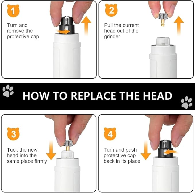 - Original Patented: Patent No: US-D1013293-S. Upgraded to 7 grooves pet nail grinder replacement head with high concentricity, better solving the problems of heat dissipation and clogging, providing a fast and safe grinding experience
