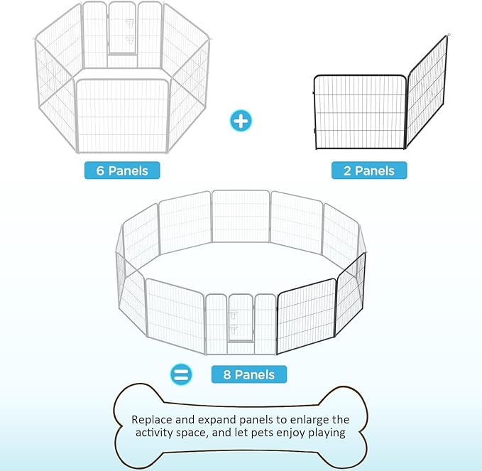 - USE AS EXTENSIONS OR REPLACEMENTS: These strong durable metal fence panels easily connect to expand your existing dog playpen or replace damaged sections, keeping your pet’s area safe and secure.