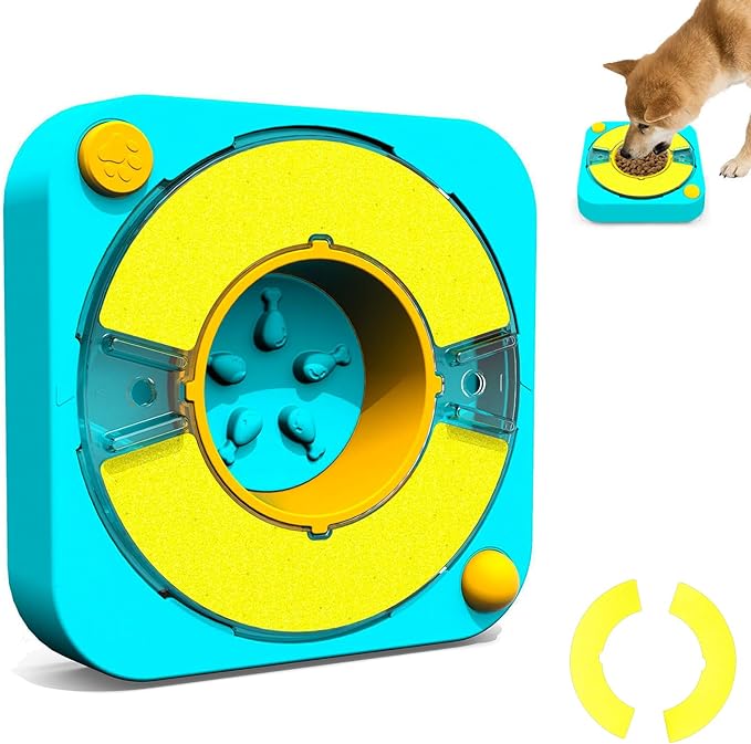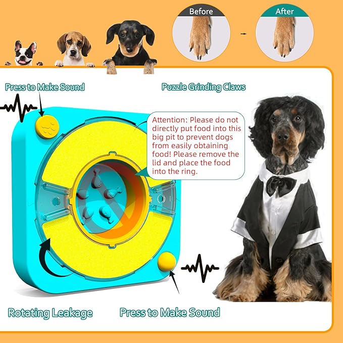 - Puzzle Feeder: Stimulates dog's brain and slows down his eating allowing for better digestion while using the dog nail file board scratch pad on top(Attention: Food should not be placed in the large pit in the middle to prevent dogs from easily consuming it without using their paws to push the nail filing board). Puzzle feeder, dog toy and dog filer for nails all in one