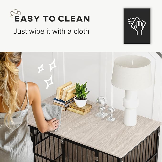 - Robust Build: Made with particle board and steel, this large dog crate furniture offers exceptional stability while allowing you to observe and interact with your dog easily.