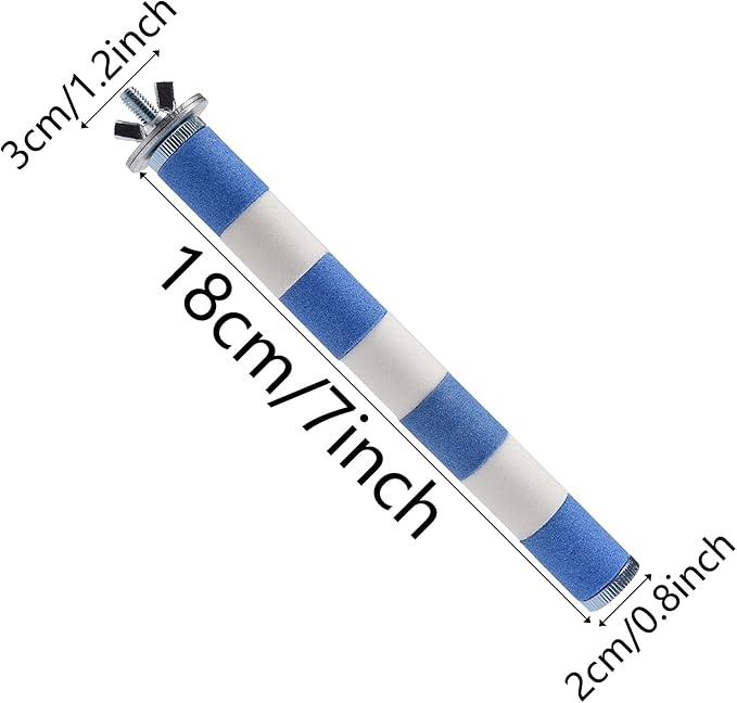 • {Packing Including}Diameter: 2.4 cm/ 0.94 inch; Overall Length: 17 cm/ 6.69 inch; Packing List: 2 x Bird Grinding Sticks (Including nut, screw and gasket).