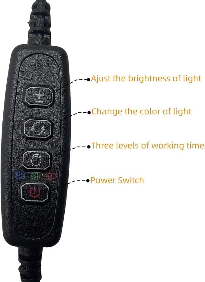 - 🐠 Three colors to choose: The circle button is the switch to change light colors from any one of white, yellow and yellow-white. And the add & subtract button is the switch to adjust the brightness of light.