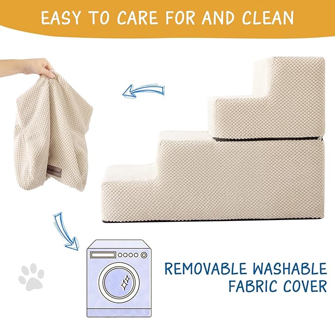 - Easy to Clean - The pet stairs feature a removable and washable cover, designed with a zipper for convenient hand washing or machine washing of the soft cover. Please refrain from machine washing or drying the foam core
