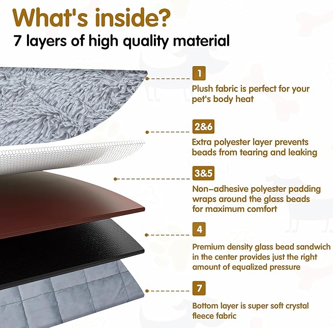 - 【Shaggy Dog Weighted Blanket】: The weighted blanket have 7 layers of blankets distribute the weight evenly into the shape of your pet's body. Soon after covering them, your dog will become calm and fall asleep under the weight of the blanket.