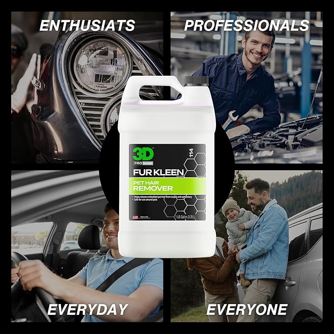 • Professional-Grade Formula: Made by 3D Car Care, a trusted name in the automotive detailing industry, Fur Kleen is a high-performance pet hair removal solution for both pet owners and professional detailers. Whether you're maintaining your personal vehicle or detailing cars for clients, Fur Kleen delivers powerful, reliable results every time