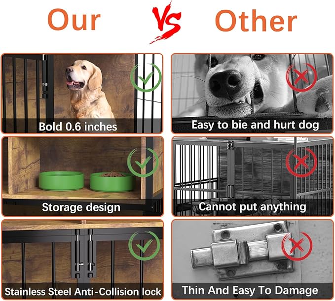 - 【Easy Assembly】:The large dog crate come with detailed instructions and tools in the package. No worry about assembling it. 100% after-service, feel free to let us know if there are any problems. Will solve it within 24 hours!