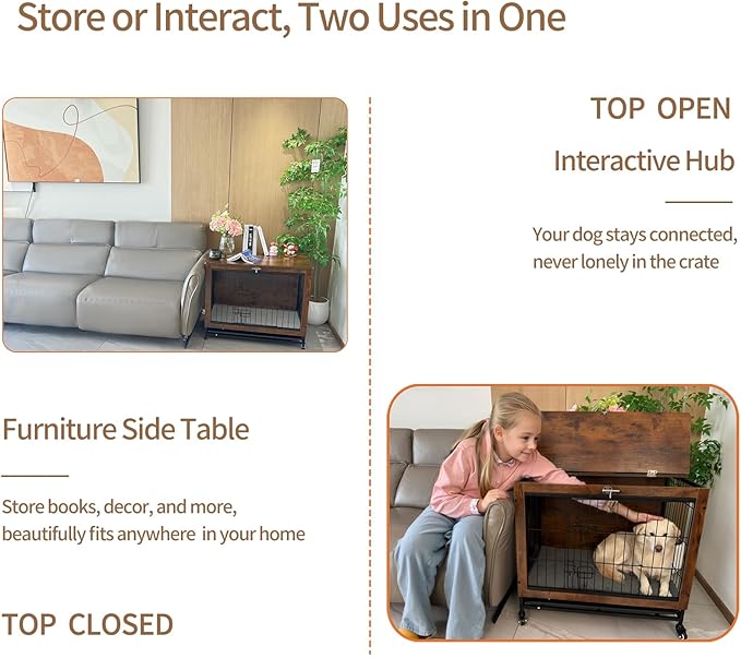 - π΄πππ π»πππ π πͺππππ π°π'π πππππππππ: This wooden dog crate furniture is designed for medium dogs. More than just a crate, itβs a stylish piece of hidden furniture. It can double as a side table, end table, nightstand, or corner table. Pay once, enjoy twice the valueβwith a wide, flat surface, itβs perfect for displaying your favorite items like small plants, books, photos, and lamps.