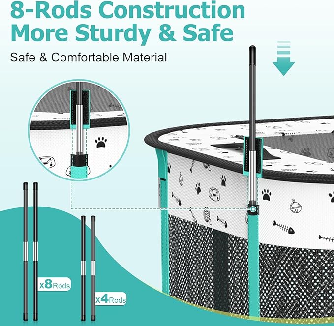 - Sturdy & Cozy Materials : Portable cat playpen upgrade with an 8-Rods structure for greater structural stability. Kitten playpen indoor is composed of thick mesh and scratch-resistant 600D Oxford cloth, which is breathable, easy to clean and waterproof