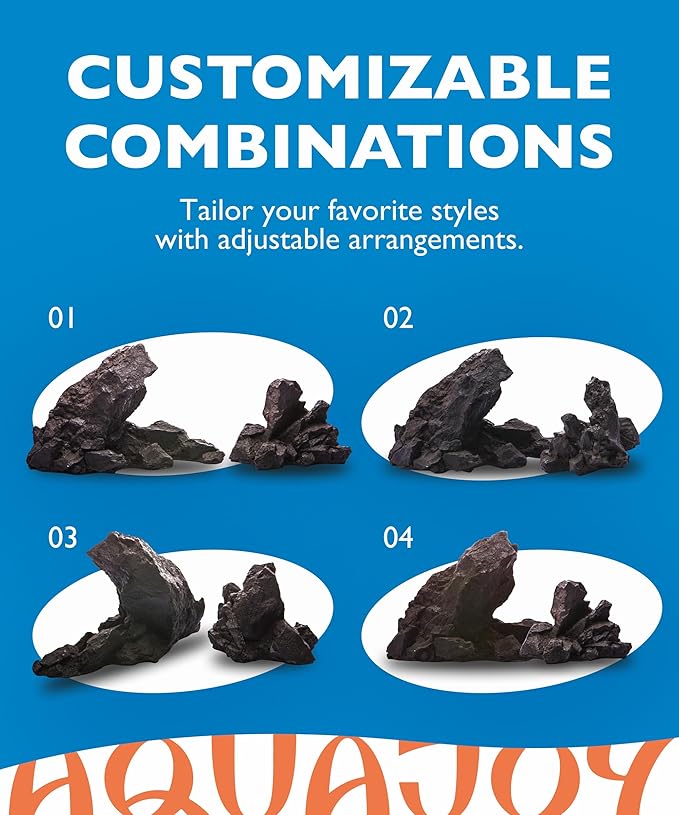 - CUSTOM FIT FOR YOUR AQUARIUM AQUAJOY rocks are designed for versatility. Each set includes two unique pieces, allowing for creative placement and endless customization. Whether you're a beginner or a seasoned aquarist, our rocks make it easy to create a unique and engaging aquatic environment.