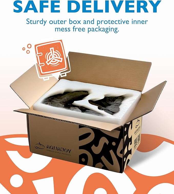 - SECURE SHIPPING ASSURED Receive your AQUAJOY decorations in pristine condition with our secure packaging. We use soft materials and sturdy boxes to protect your rocks during shipping. No more worries about damaged products – just open the box and start decorating your tank!Each set includes two components- the center stone and the side stone. Other plants are not included.
